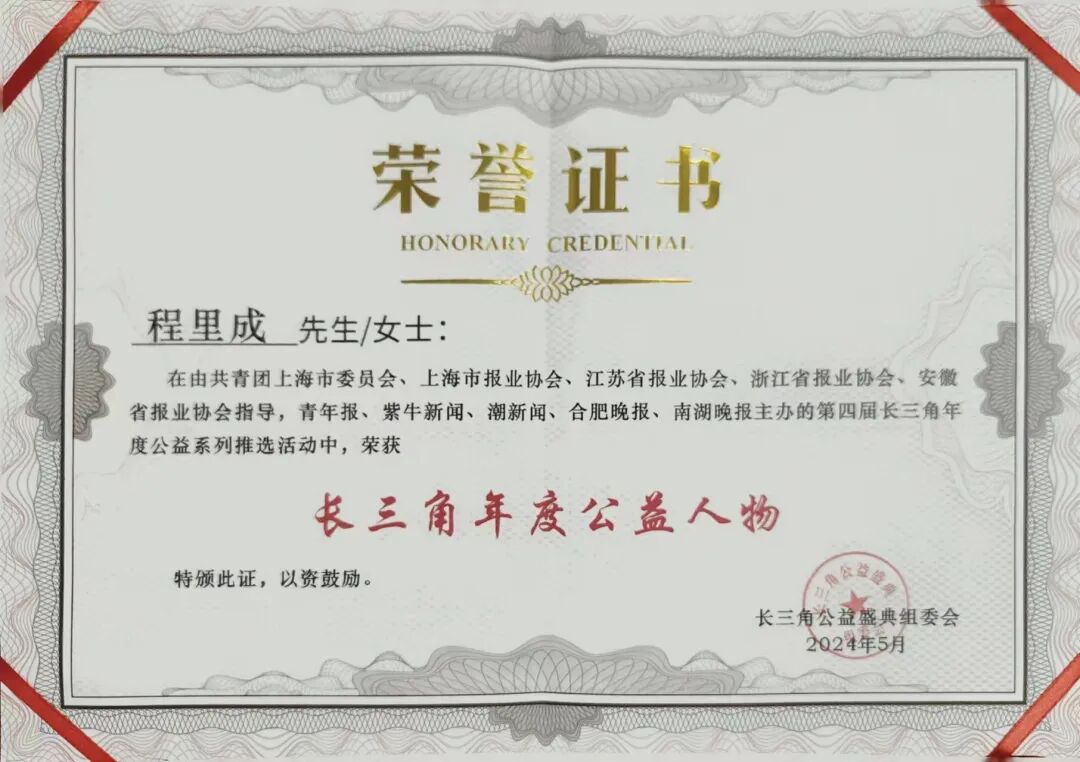 20年的时光,程里成始终如一投身公益事业。他扶孤助残,2013年至今,组织“进社区”80余次,服务老人、儿童近3万人次;他无偿献血,2004年第一次献血至今,无偿献血146次,先后荣获全国无偿献血奉献奖终身荣誉奖、四次荣获全国无偿献血奉献奖金奖;他传递温暖,关注青少年群体的成长,发起“励志梦想课堂”项目,服务学生21万余名。2022年,他还成立了“阜阳一中程里成社工服务工作室”,工作室坚持运用社会工作专业服务方法,解决学生困难和问题。